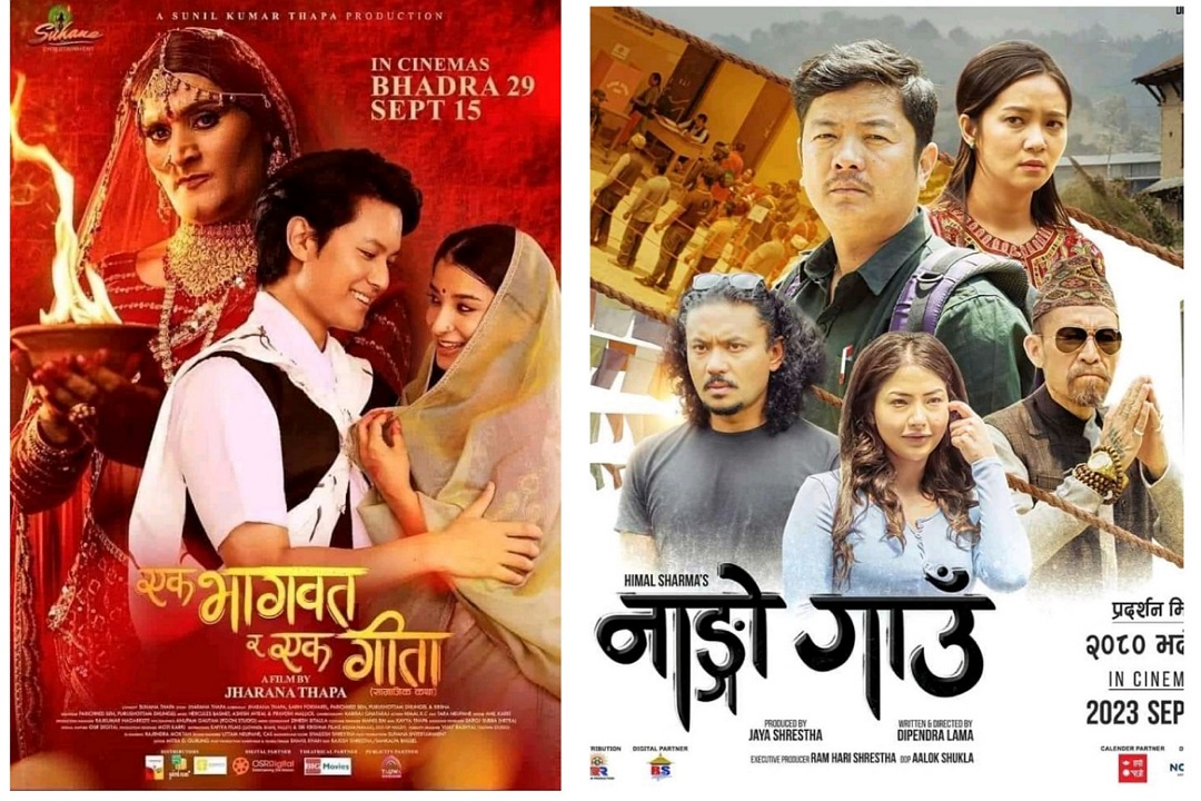चितवन –  आजदेखि दुई नयाँ नेपाली चलचित्र ‘एक भागवत् र एक गीता’ तथा ‘नाङ्गो गाउँ’ प्रदर्शनमा आएका छन्। आउँदो हरितालिका तीजलाई लक्षित गर्दै दुवै चलचित्र प्रदर्शन गरिएका हुन्। सामाजिक विषयवस्तुमा आधारित भए पनि प्रस्तुतीकरणका कारण दुवै चलचित्रका लक्षित दर्शक फरक छन्।