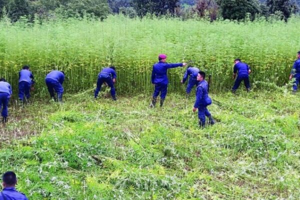 १५ बिघामा लगाइएको गाँजा खेती प्रहरीद्वारा नष्ट